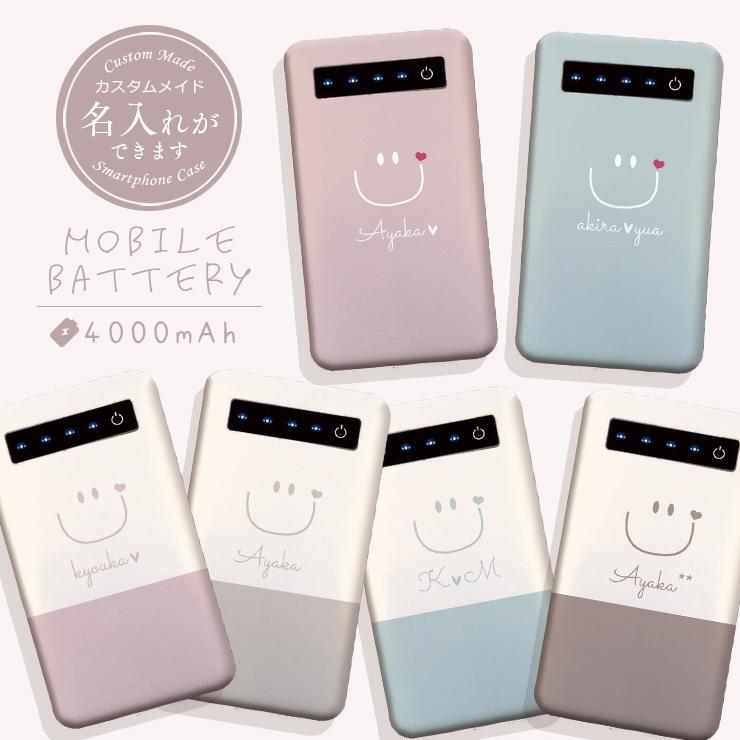 名入れ モバイルバッテリー 大容量 薄型 防災グッズ 4000mah Iphone スマホ 充電器 軽量 おしゃれ ペア ニコちゃん スマイル くすみカラー 韓国 大人可愛い Ordername Mb3 301 通販 Yahoo ショッピング
